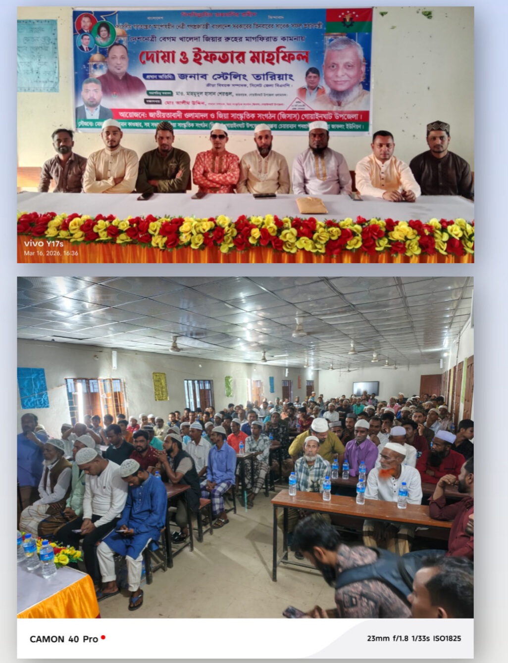 শামীম আহমদ,স্টাফ রিপোর্টার সিলেট। সিলেটের গোয়াইনঘাট উপজেলায় মরহুম দেশনেত্রী বেগম খালেদা জিয়া -এর রুহের মাগফেরাত কামনায় দোয়া ও ইফতার মাহফিল